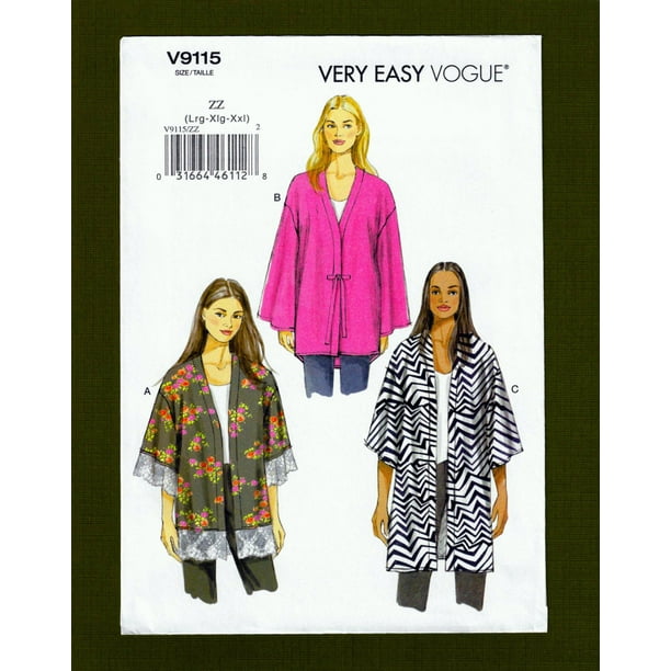 Vogue 9115 Sewing Pattern 3 Styles Easy Kimono Jackets Plus Sizes L Xxl Walmart Com