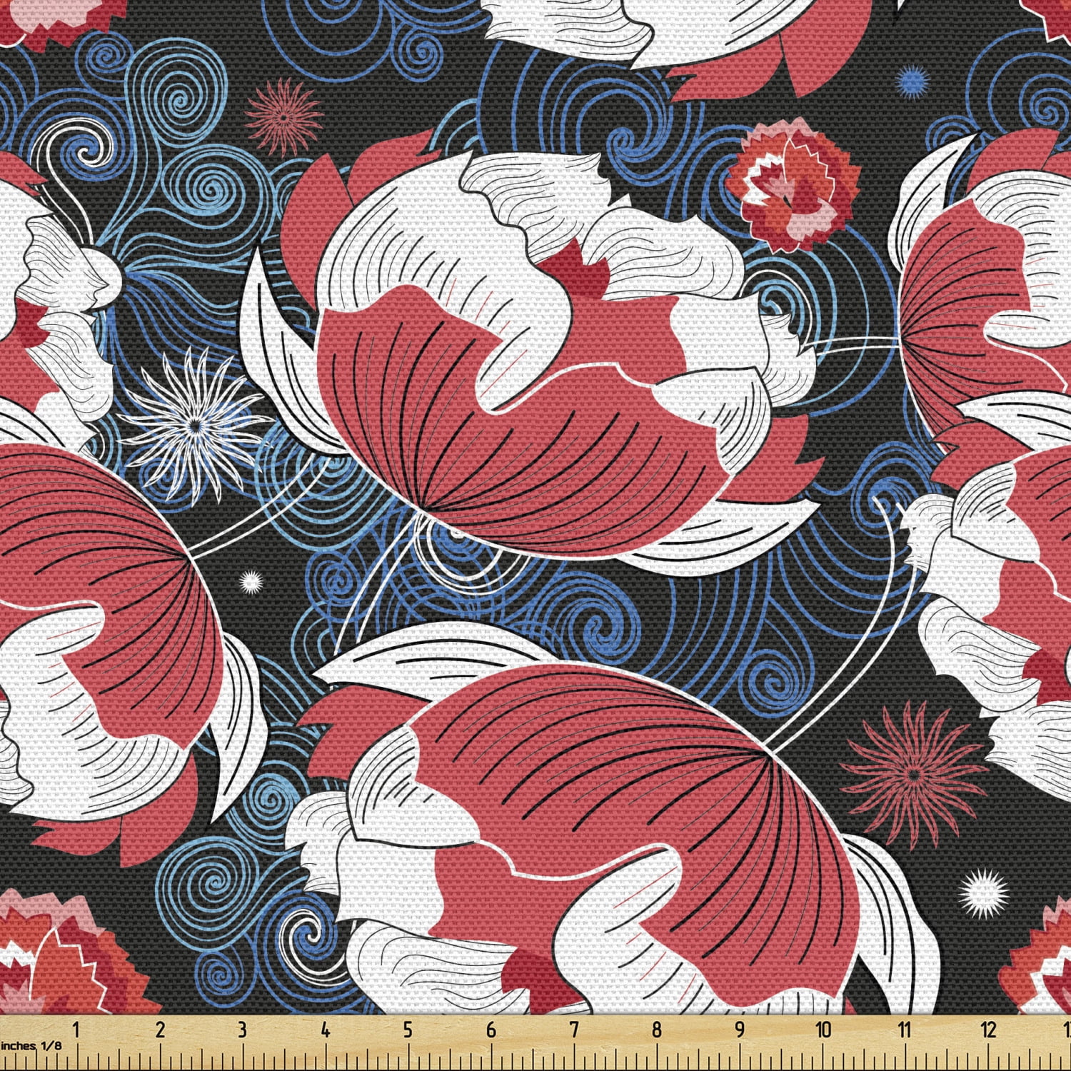 Geometric Fabric By The Yard Upholstery Japanese Classic Floral Motif Interlocking Lattice Circles Pattern Design Decorative Fabric For Diy And Home Accents Vermilion Cream By Ambesonne Walmart Com